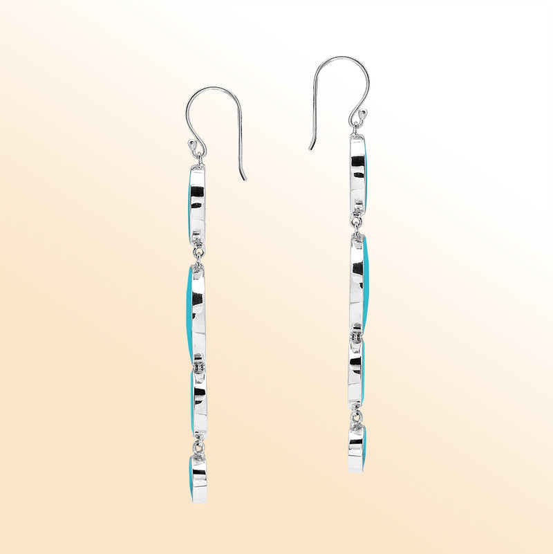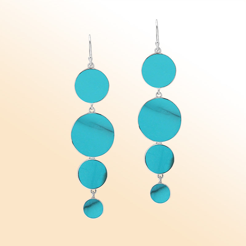 Embrace coastal elegance with these Sterling Silver Turquoise Shell Ocean Breeze Cascading Dangle Earrings For Women. Each shimmering turquoise circle reflects the refreshing hues of tropical waters, evoking a sense of serenity and escape. The cascading design adds graceful movement, while the mirror-polished silver enhances every glimmer of color. Perfect for those who love bright, artistic jewelry that captures the spirit of the sea and timeless elegance.