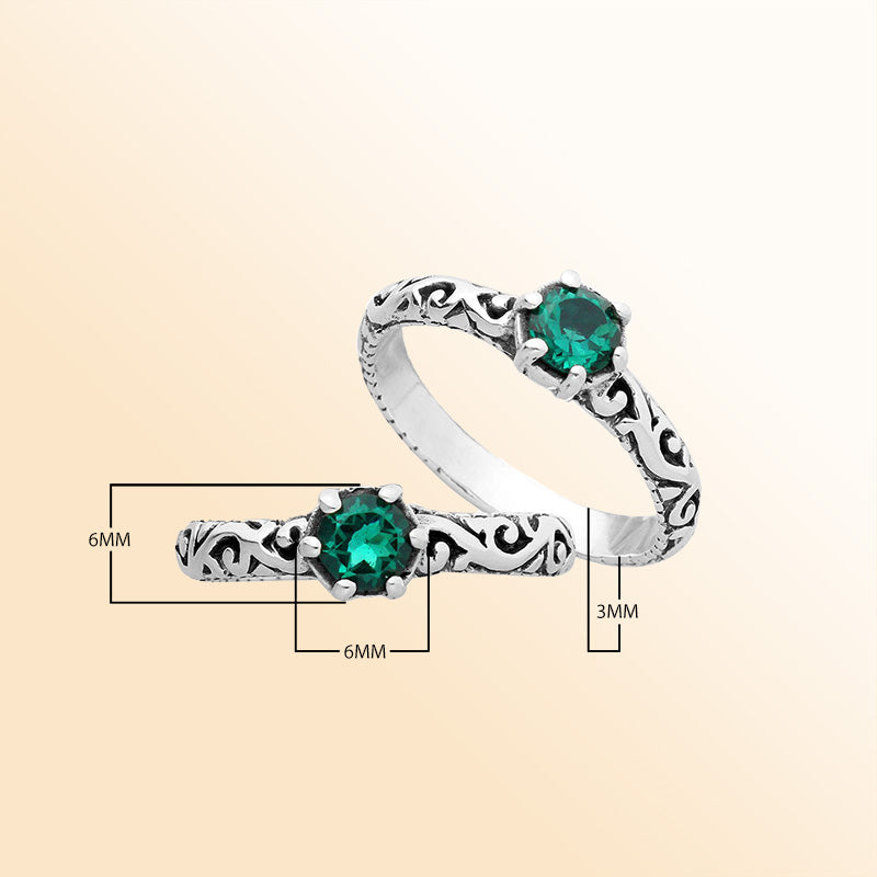 Add a touch of natural elegance to your style with this beautifully handcrafted Sterling Silver ring. At its center shines a brilliant round Green Quartz, known for symbolizing balance, growth, and vitality. The detailed Balinese-inspired filigree design with oxidized accents gives the ring a unique artisan charm, making it perfect for both everyday wear and special occasions.   925 Sterling Silver Green Quartz (Round Cut) Artisan filigree with oxidized finish Elegant, versatile, handcrafted jewelry Daily wear, quartz lovers, or meaningful gifts 6MM X 6MM 3MM